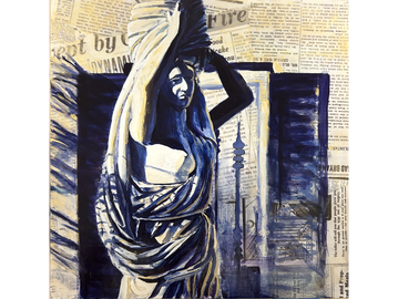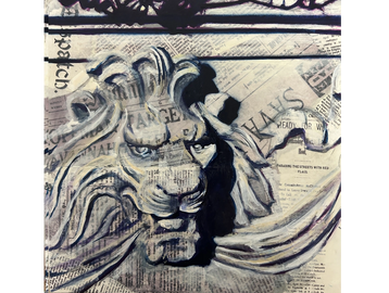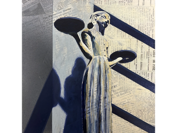 60" x 48"" Paper and Acrylic collage over cut, recycled metal on acrylic panel